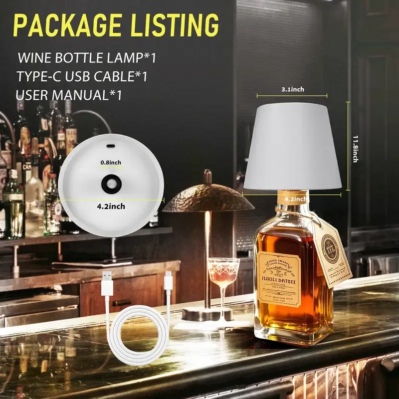 2026 New Wireless Bottle Lamp - LED Bottle Lights for Liquor & Wine Bottles, Cordless Lampshade, Whiskey Bottle Top Light, Bottle Stopper Night Light Kit, Rechargeable 3-Tone Touch-Dimmable